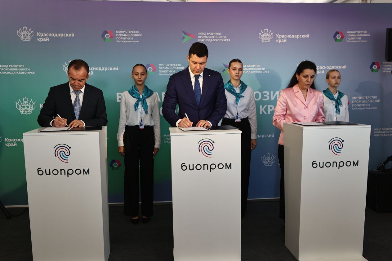 Церемония прошла в культурно-деловом центре «Геленджик-Арена». Свои подписи в документе поставили Министр промышленности и торговли РФ Антон Алиханов, Губернатор Краснодарского края Вениамин Кондратьев и Генеральный директор организатора БИОПРОМ - компании «Формика Ивент» - Екатерина Егорычева.
